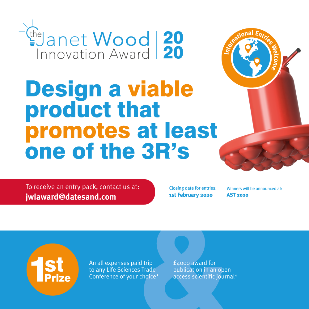 Nominations are now open for the Janet Wood Innovation Award 2020 – to design a viable product that promotes at least one of the 3Rs.